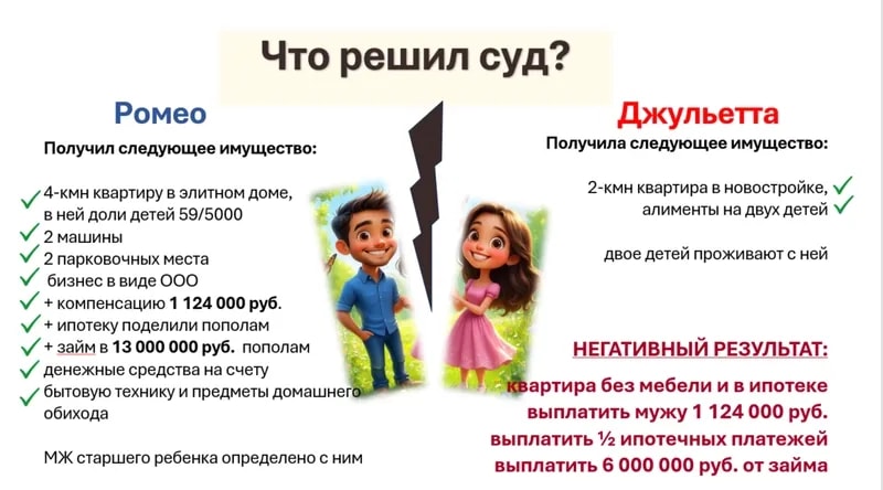 Это история о том, как после 12 лет брака супруги делили имущество, детей и долги. Как один иск о разводе и не желание договариваться, в итоге вылилось в целую череду судебных процессов длиной более пяти лет. И привело к тому, что бывшая супруга чуть не стала фигурантом уголовного дела и осталась с большими долгами.